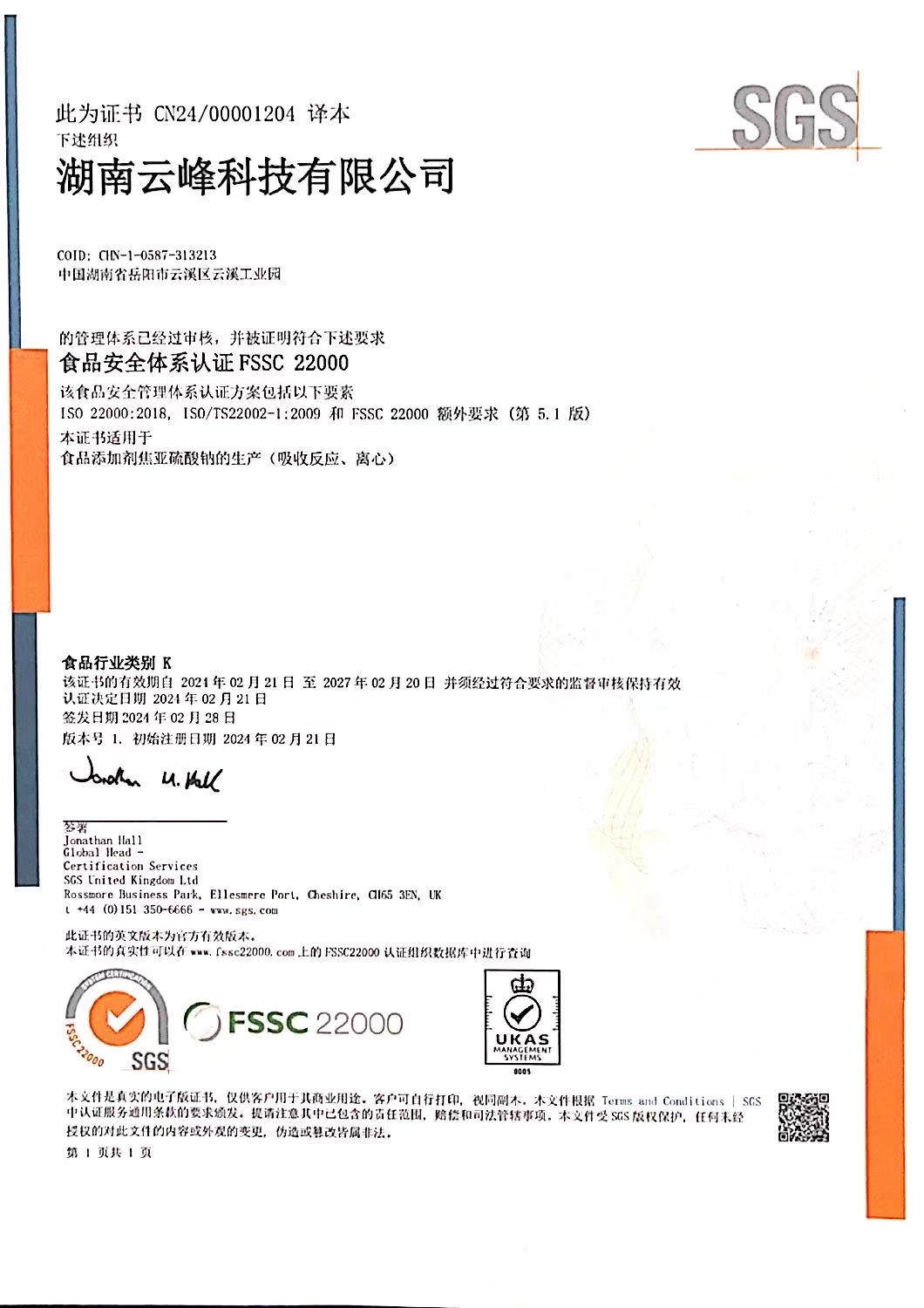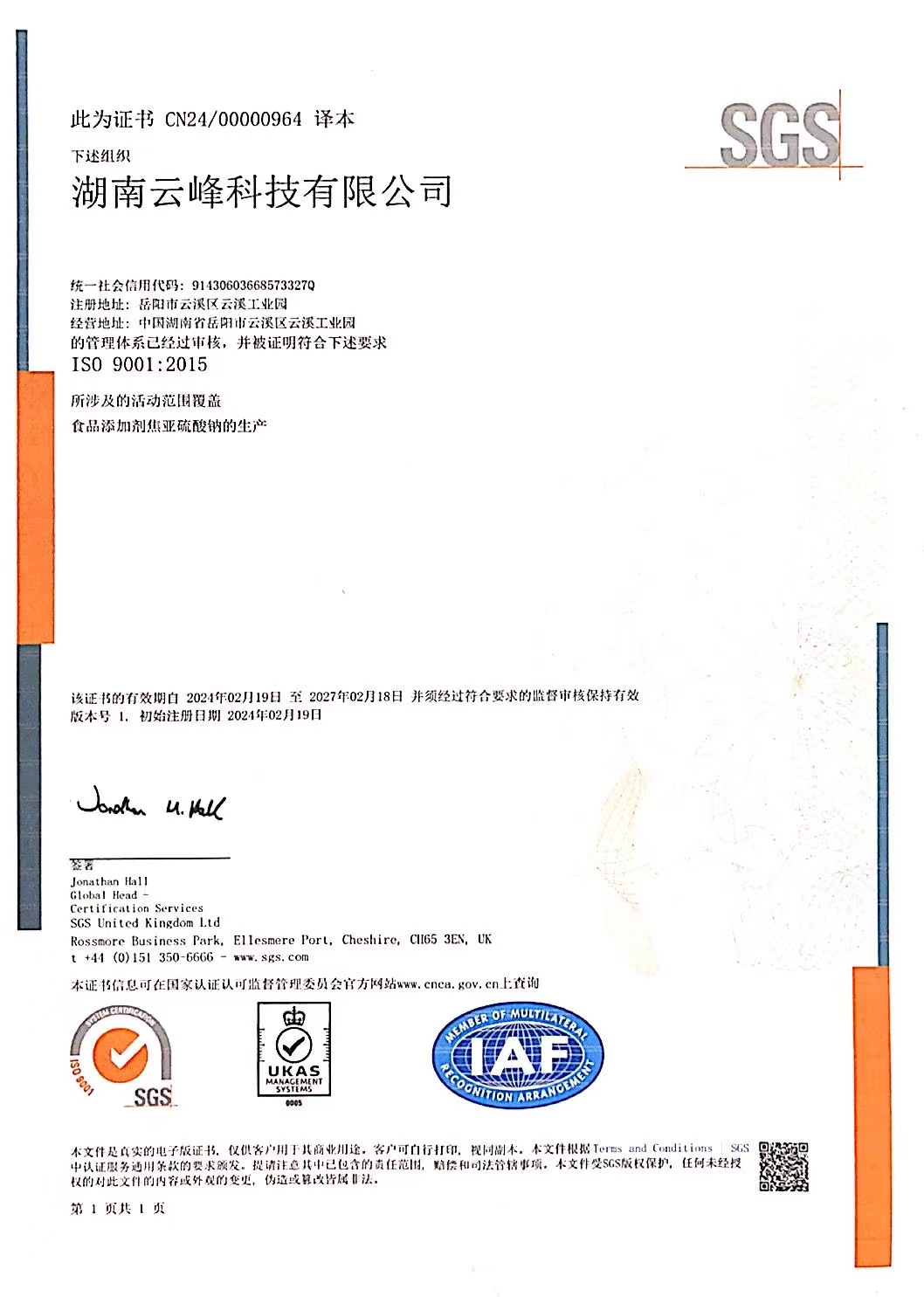 湖南云峰科技有限公司(以下簡稱云峰科技),是由長沙湘岳化工責(zé)任有限公司全額投資以生產(chǎn)焦亞硫酸鈉、亞硫酸鈉等亞硫酸鹽為主營業(yè)務(wù)的高科技企業(yè),具有六十多年的生產(chǎn)歷史,同時(shí)也是焦亞硫酸鈉的國家標(biāo)準(zhǔn)制定參與者。在行業(yè)內(nèi)具有很大的影響力?,F(xiàn)有職工八十余人。具有優(yōu)良的經(jīng)營管理團(tuán)隊(duì)和成熟的生產(chǎn)技術(shù)隊(duì)伍。由多位在化學(xué)、化工行業(yè)擁有豐富工作經(jīng)驗(yàn)的工程師及技術(shù)員團(tuán)隊(duì)組建而成,致力于亞硫酸鹽產(chǎn)品的研發(fā)、生產(chǎn)和銷售。2020年公司對生產(chǎn)設(shè)備、安環(huán)設(shè)施及工業(yè)技術(shù)等進(jìn)行了大規(guī)模的升級改造,使焦亞硫酸鈉和亞硫酸鈉的生產(chǎn)工藝更加先進(jìn),技術(shù)更成熟,產(chǎn)品質(zhì)量更優(yōu)良。無論在生產(chǎn)工藝、設(shè)備、產(chǎn)品質(zhì)量、清潔生產(chǎn)、節(jié)能環(huán)保和員工素質(zhì)方面,均處于行業(yè)領(lǐng)先地位。公司的主導(dǎo)產(chǎn)品“云峰”牌焦亞硫酸鈉,歷史悠久,深受國內(nèi)外客戶信賴,產(chǎn)品遠(yuǎn)銷東南亞、歐美、非洲、南美洲等20多個(gè)國家和地區(qū),產(chǎn)品供不應(yīng)求。